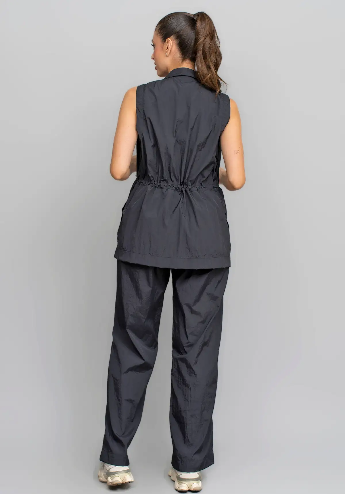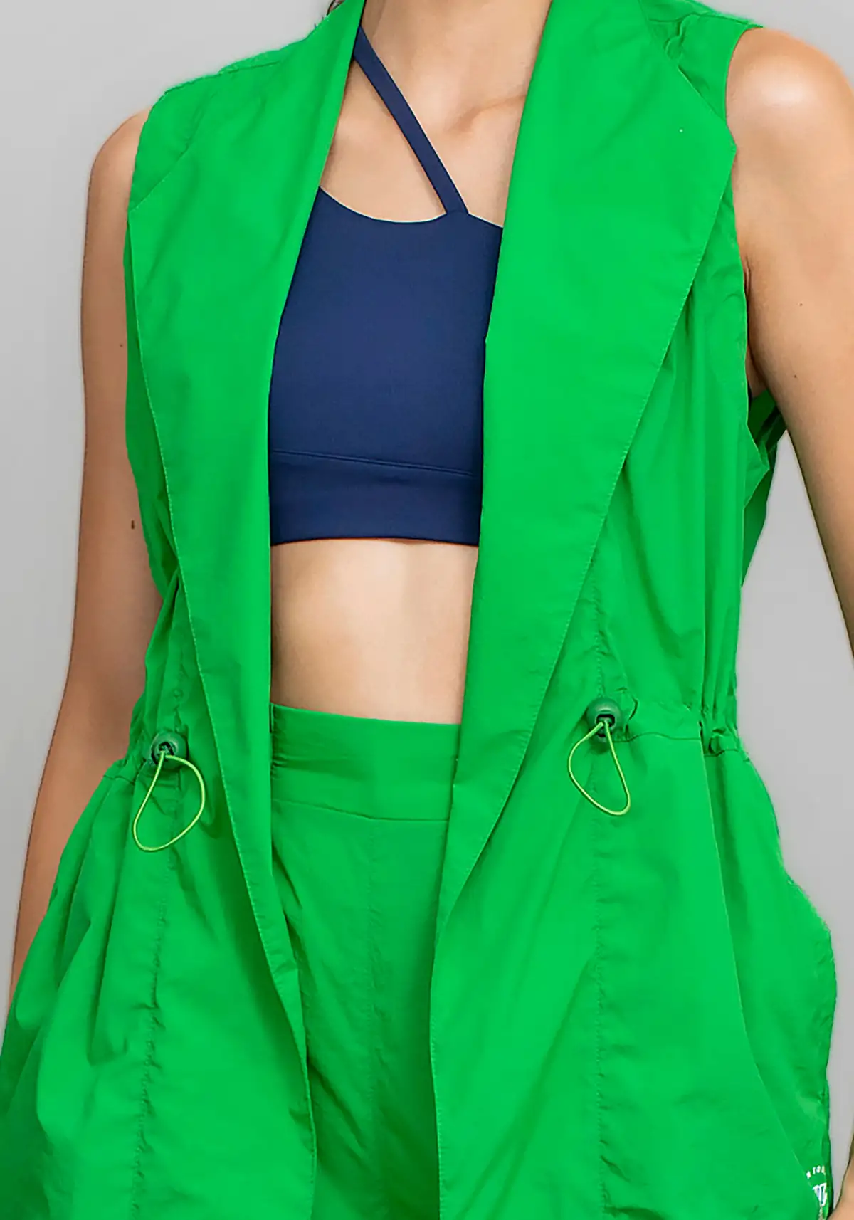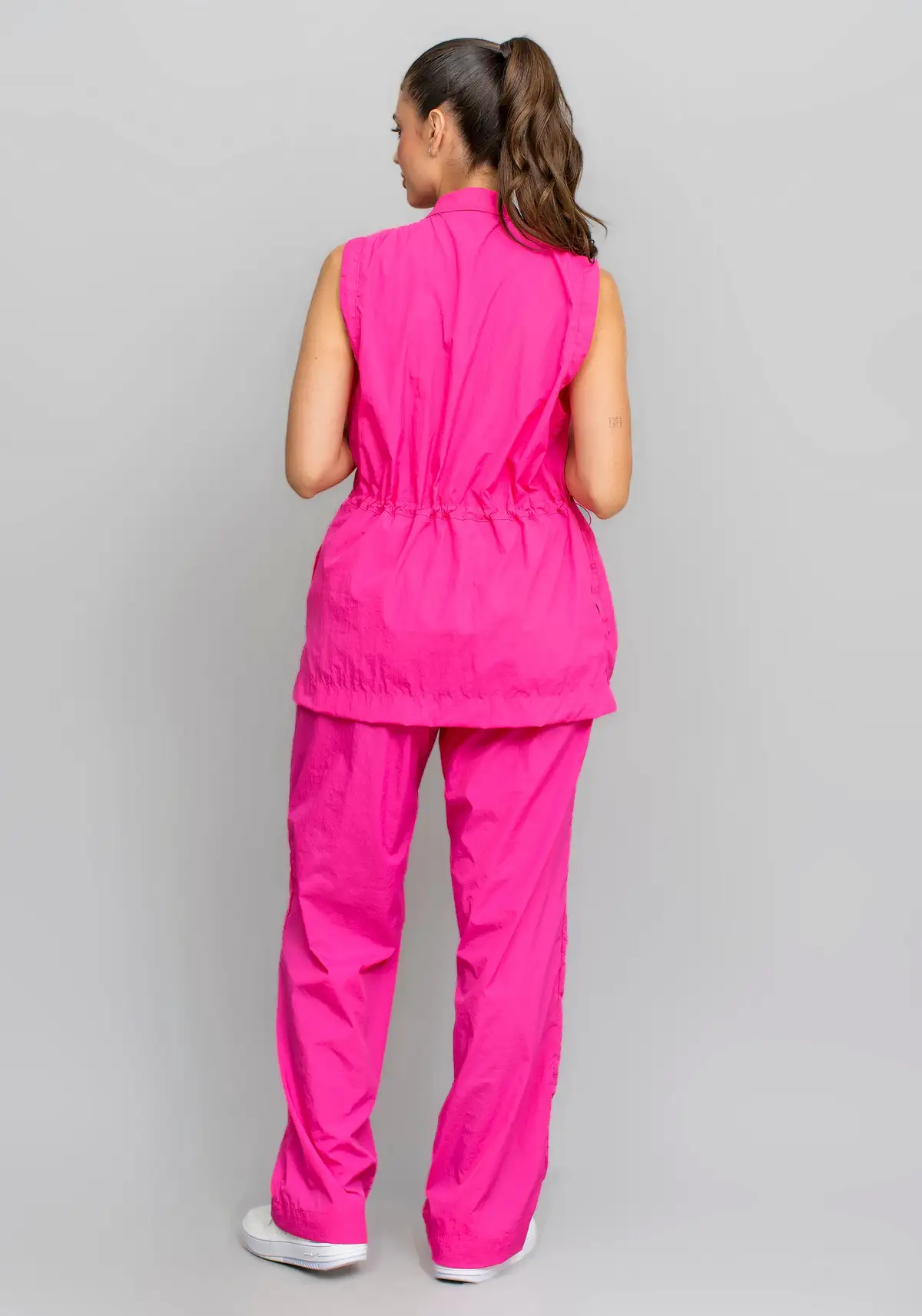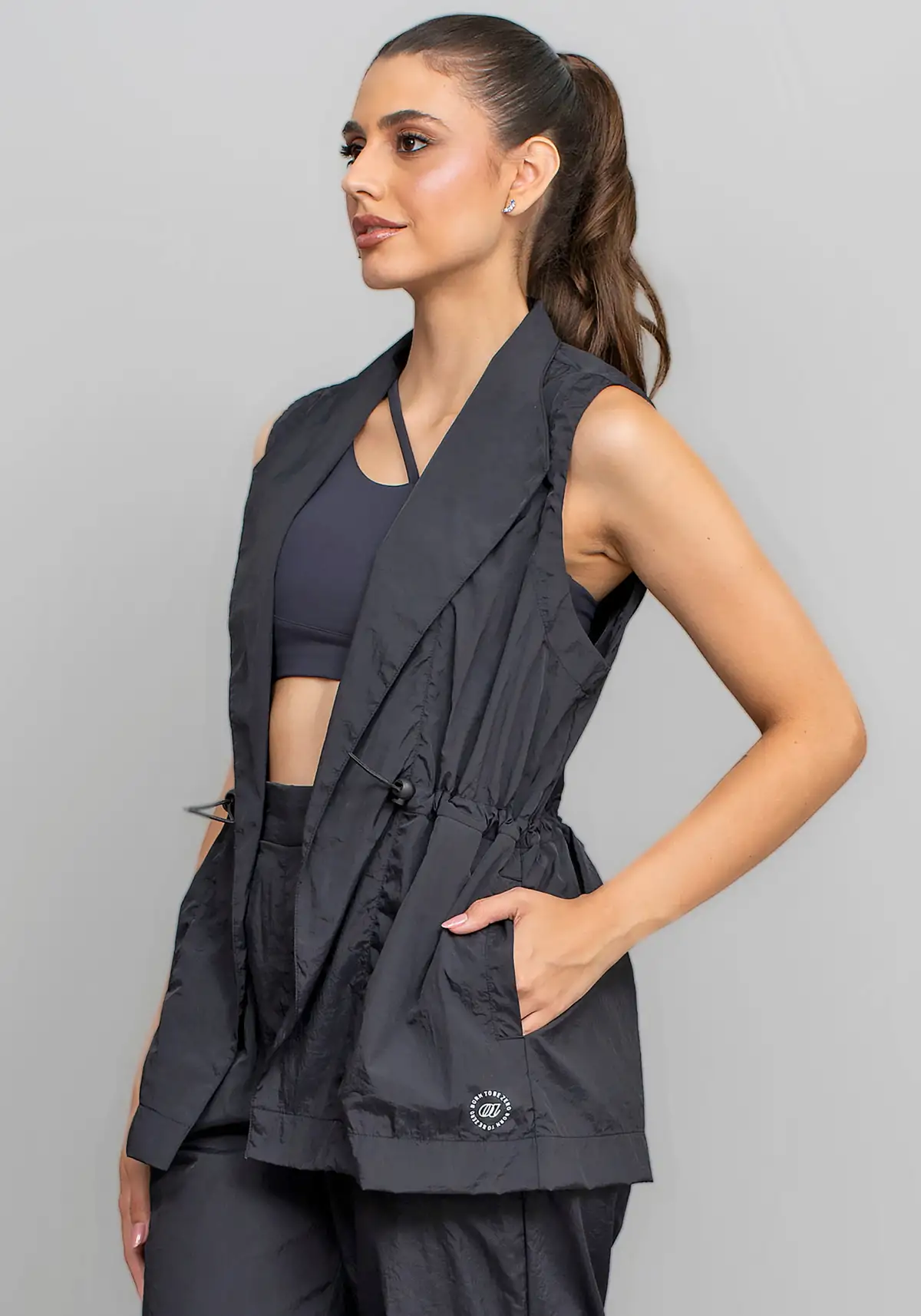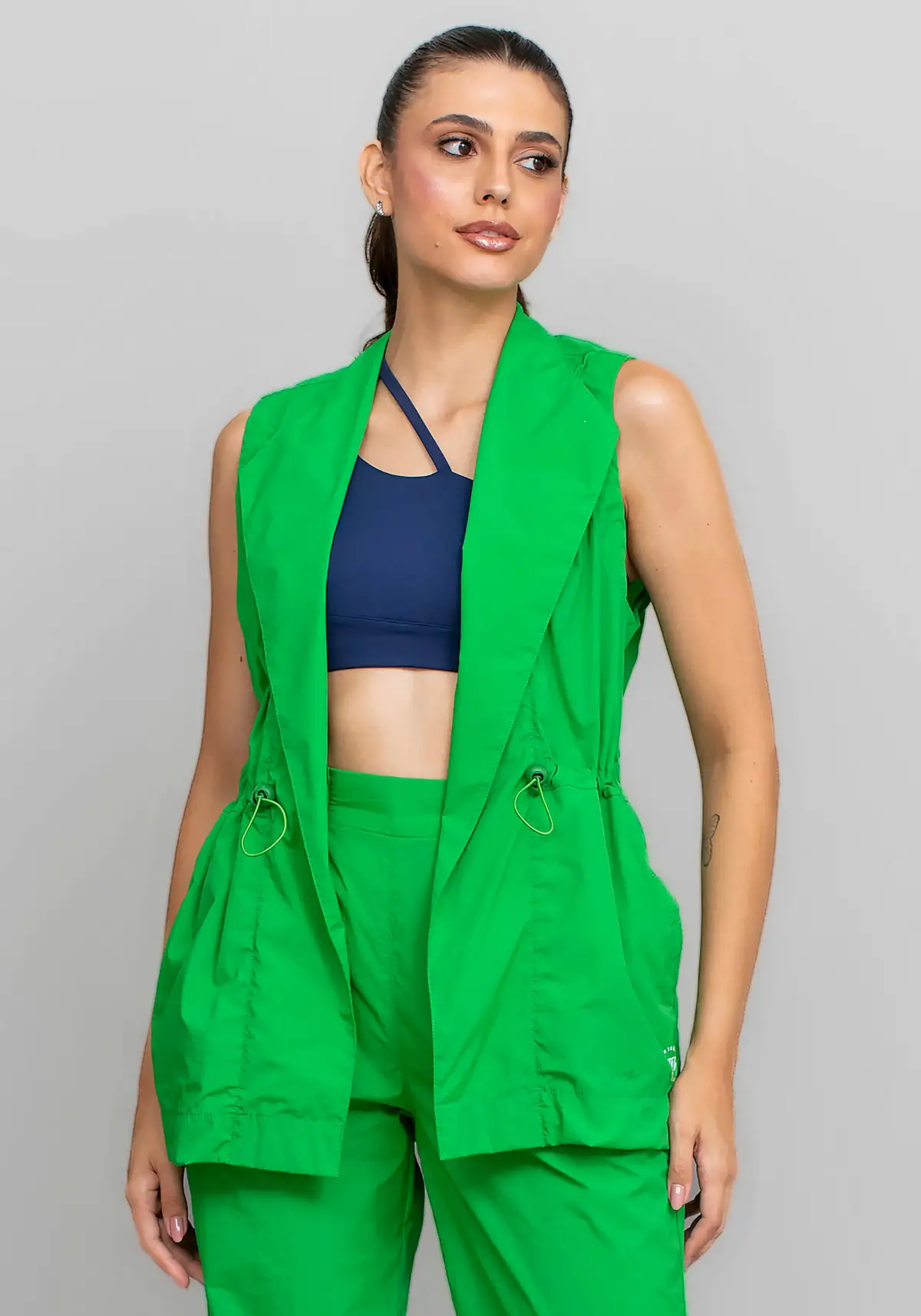 Com modelagem aberta e caimento reto, o colete valoriza qualquer composição de look. O design minimalista e elegante permite combinações versáteis, indo do casual ao esportivo-chic com facilidade.