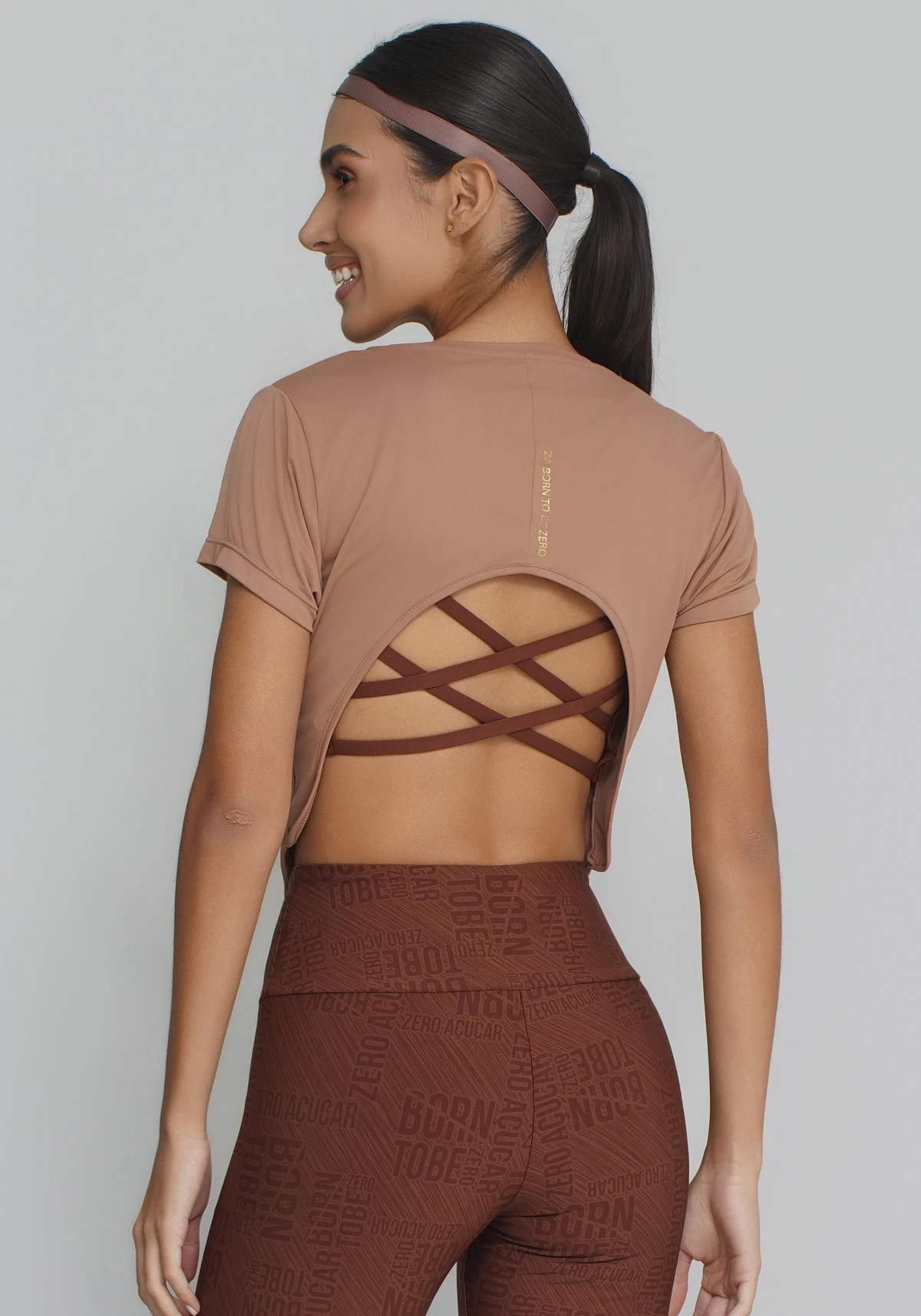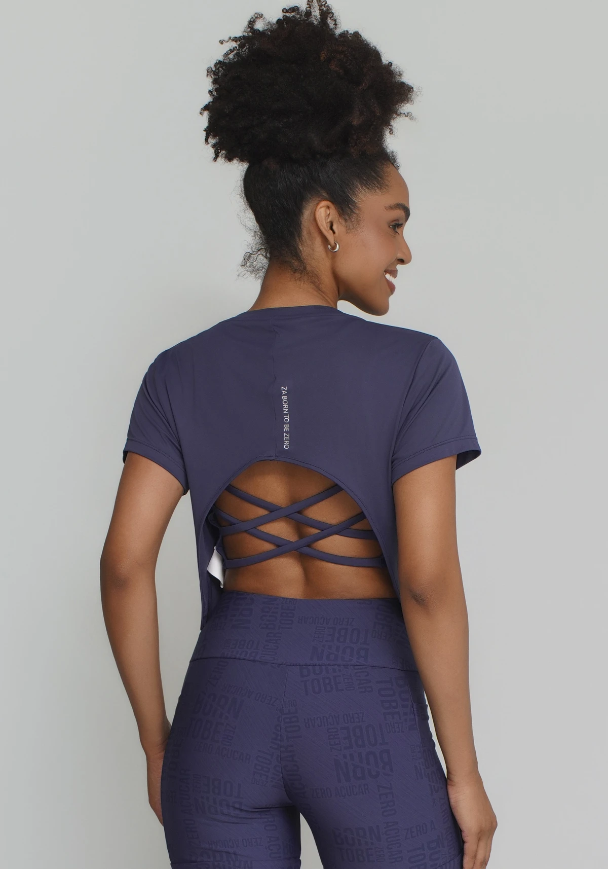 Pensada para alto giro de movimento: não cola no corpo com suor, não esquenta em ambientes externos e permite amplitude total sem limitar ombro ou tronco. Detalhe aberto nas costas para evidenciar seu top.