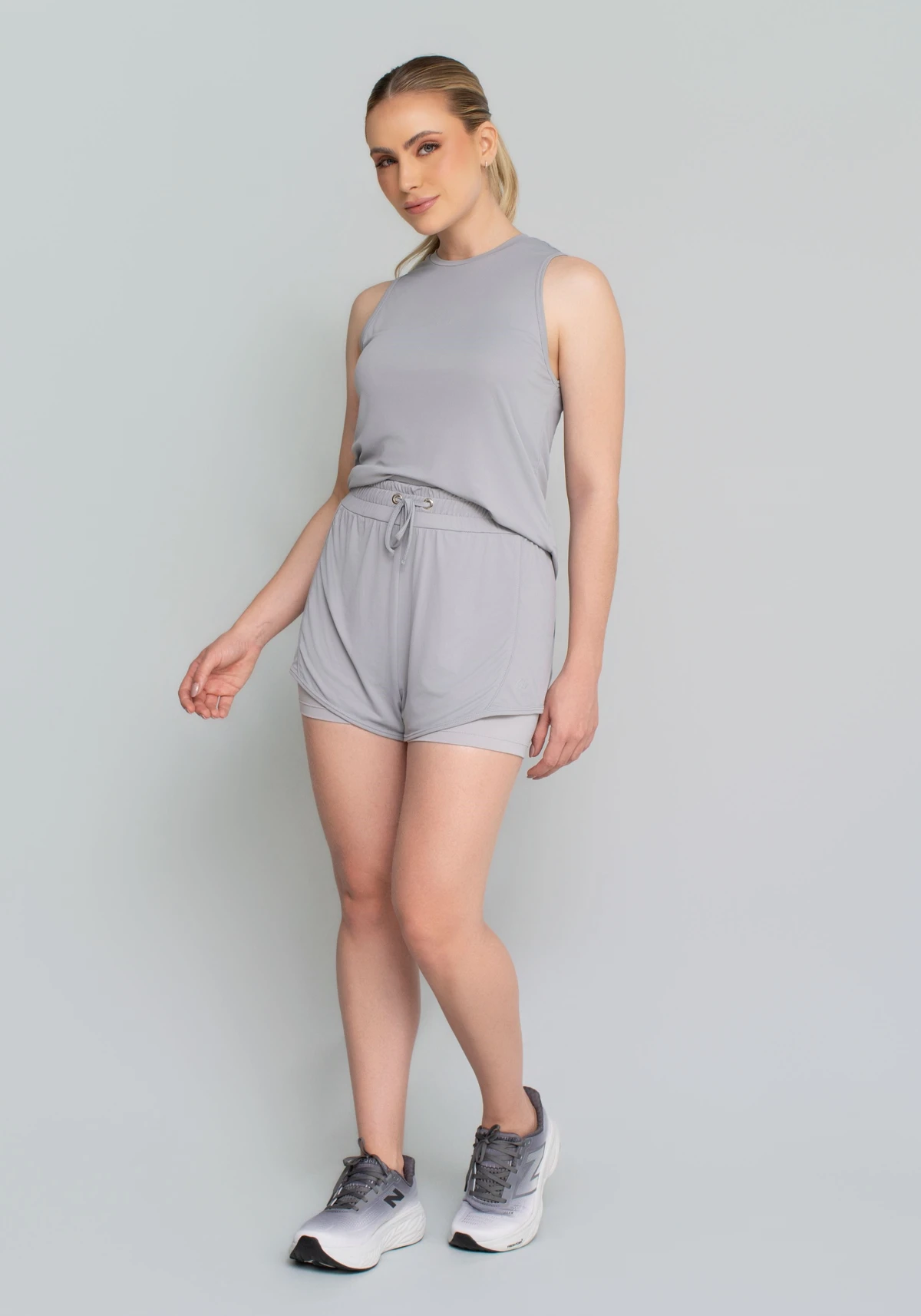 Modelagem esportiva com short interno de compressão suave e externo com caimento leve, criando visual moderno e técnico ao mesmo tempo. Ideal para quem busca estilo sem perder função.