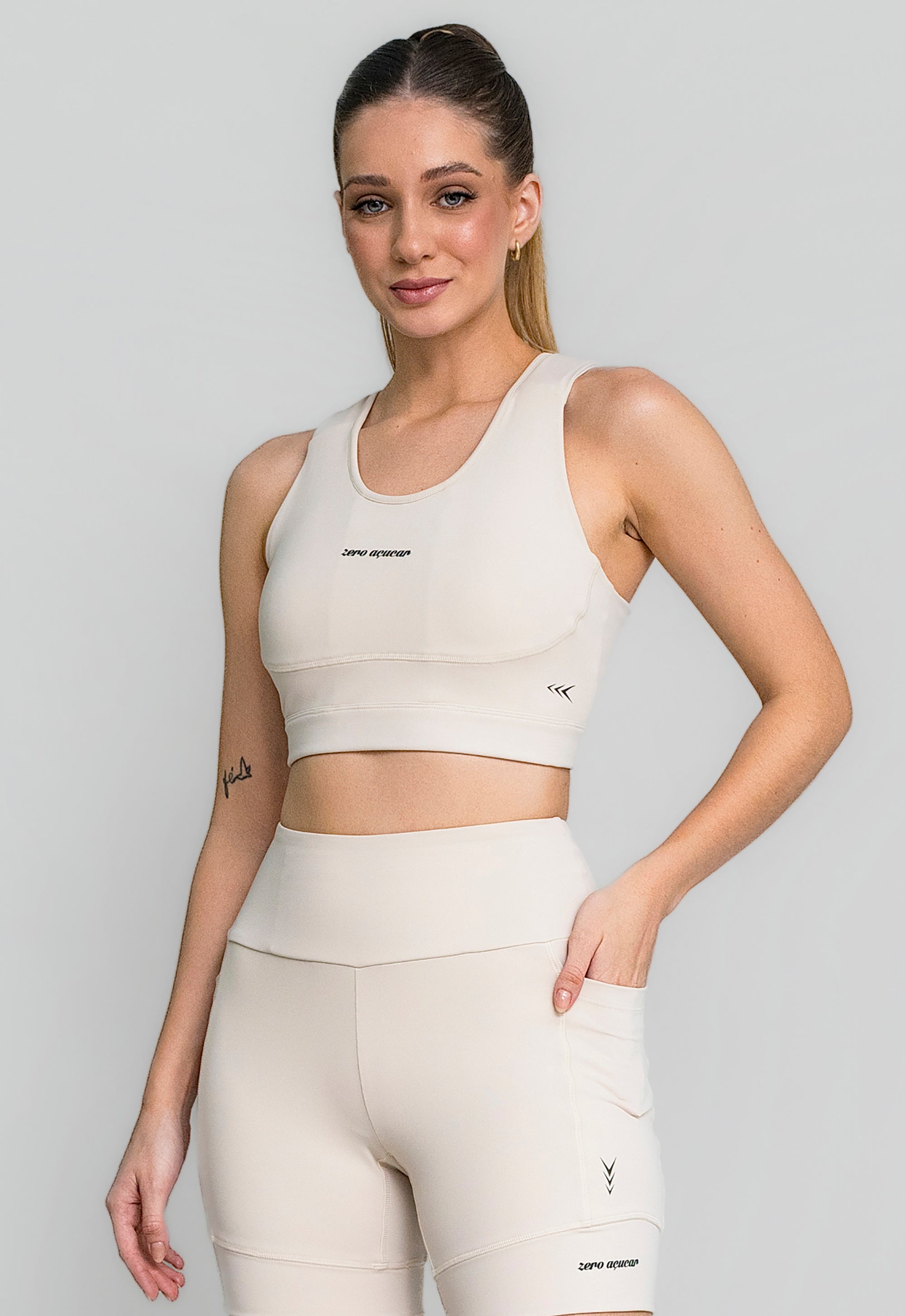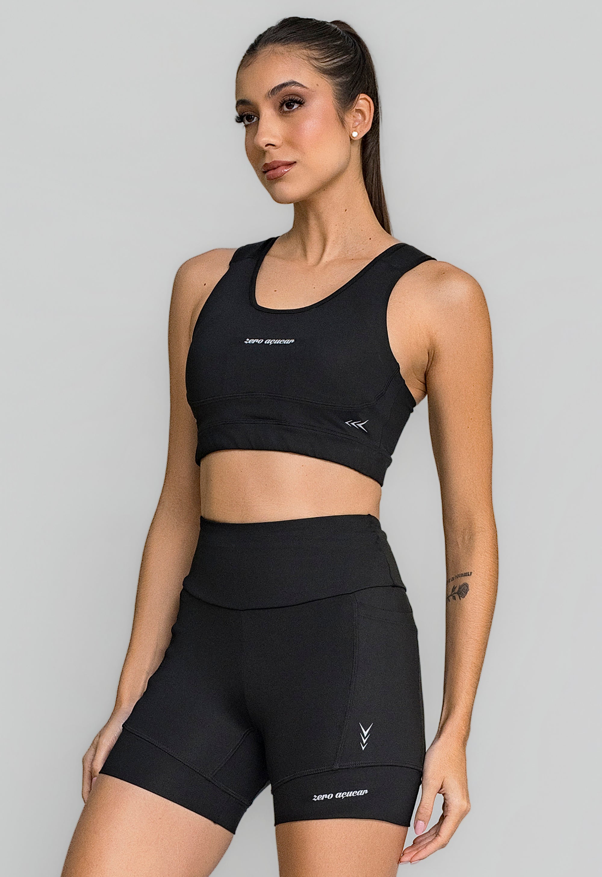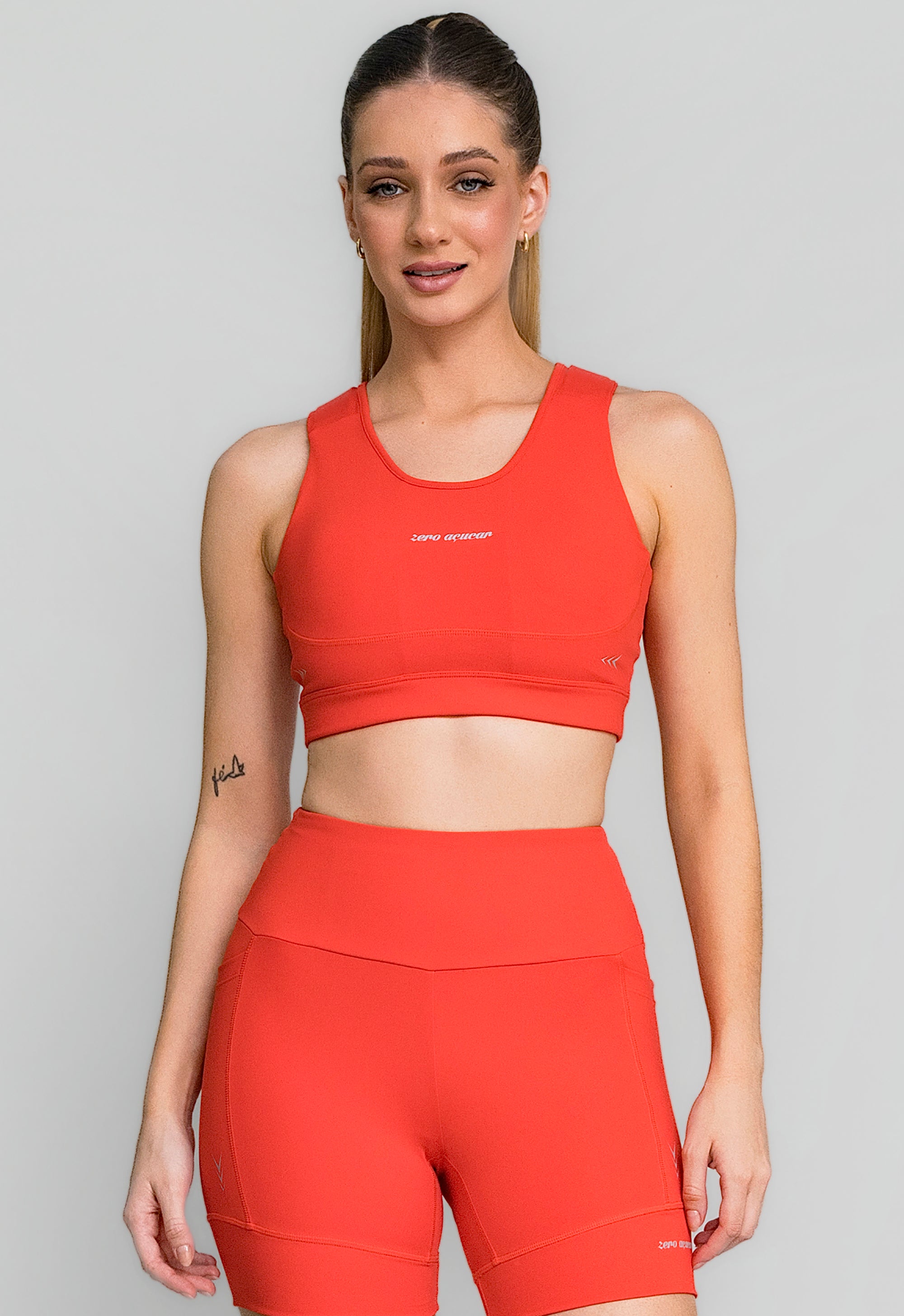 Com recortes anatômicos e bojo estruturado, o top valoriza a silhueta e oferece firmeza onde o corpo mais precisa. A combinação de tecido compressivo, espuma protetora e proteção solar garante desempenho, conforto e estilo em um único produto.