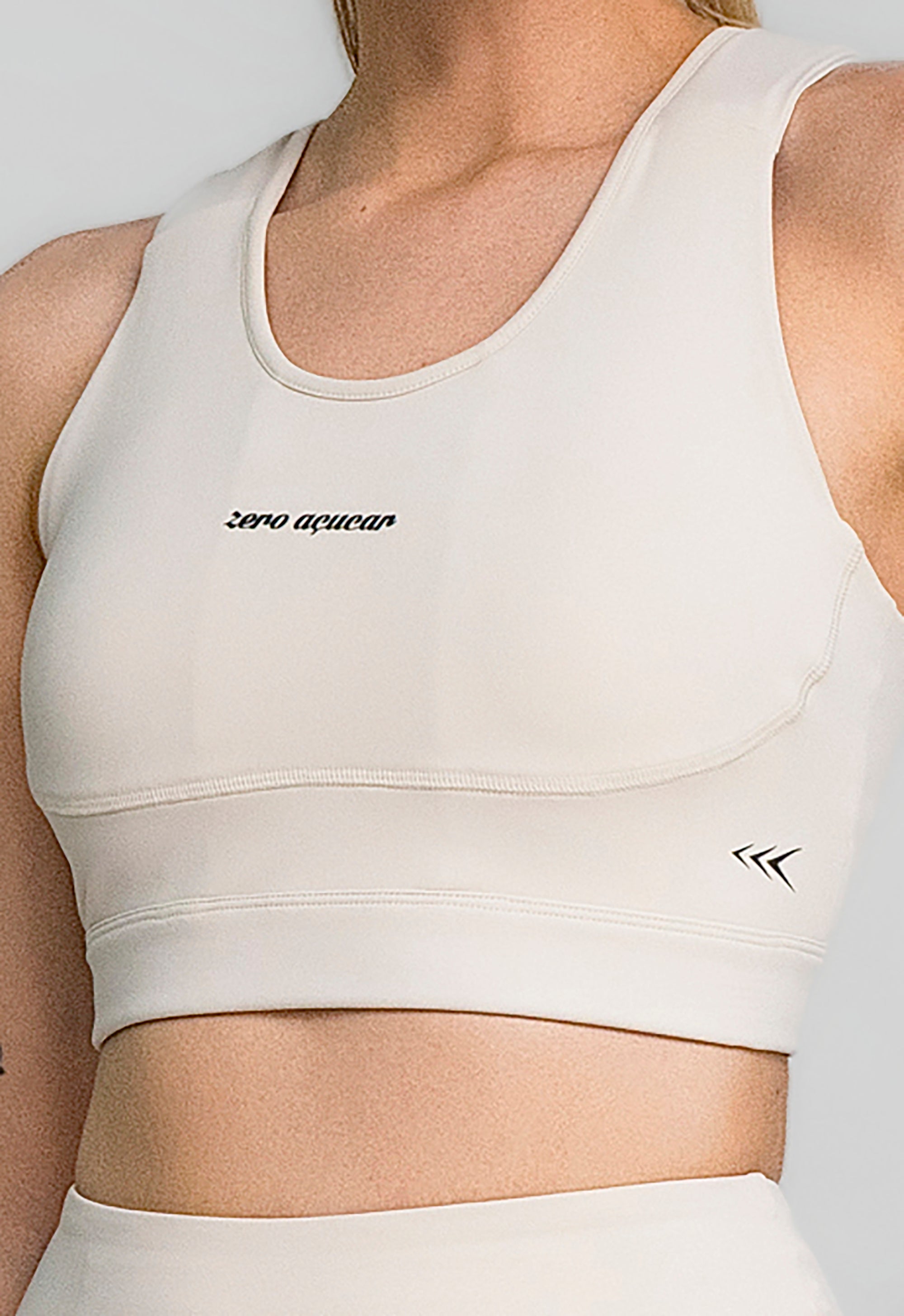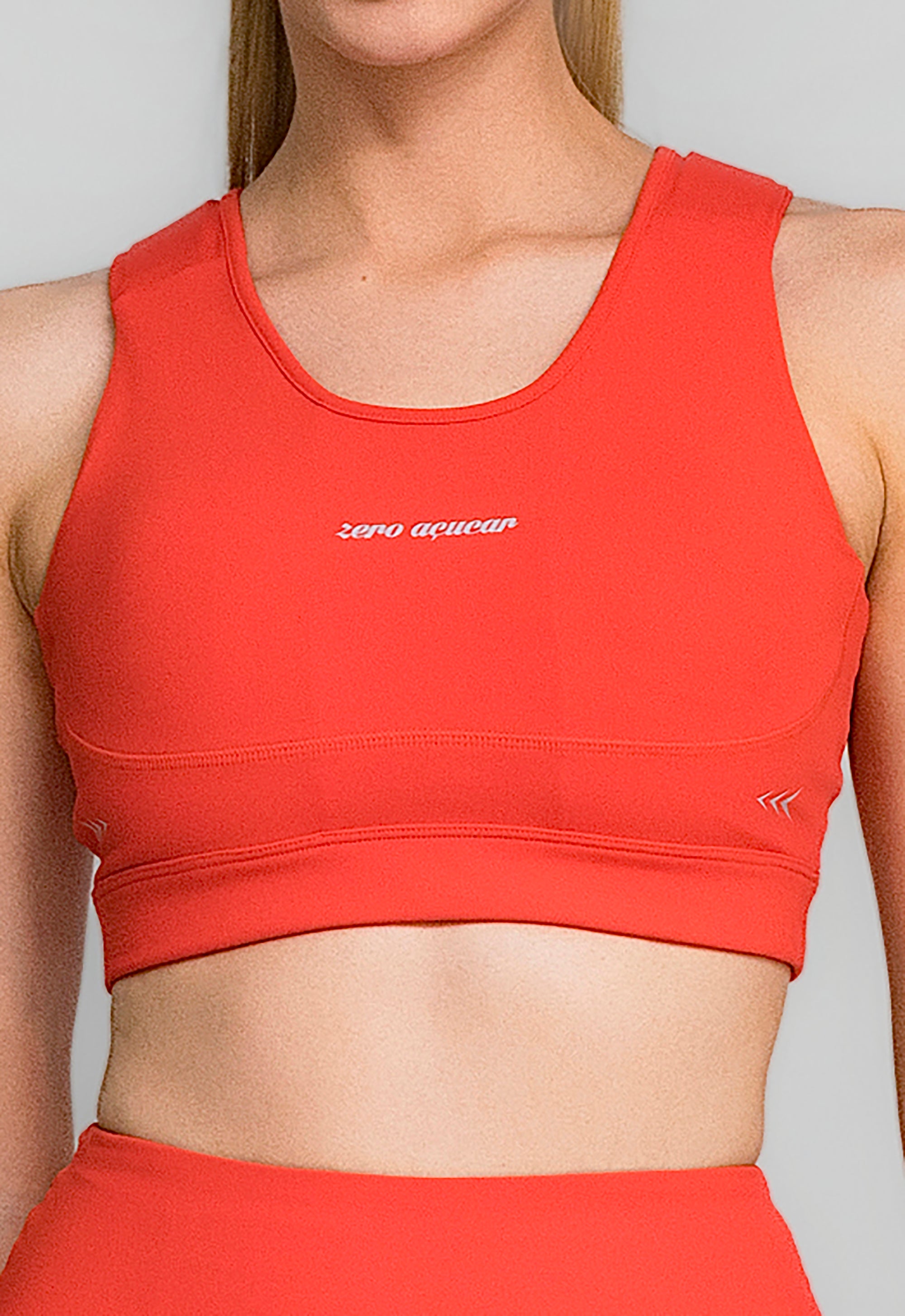O Top 21KM Sou Corredora em tecido Zero Max oferece alta sustentação, proteção UV e conforto total, com bojo DRY e espuma protetora.