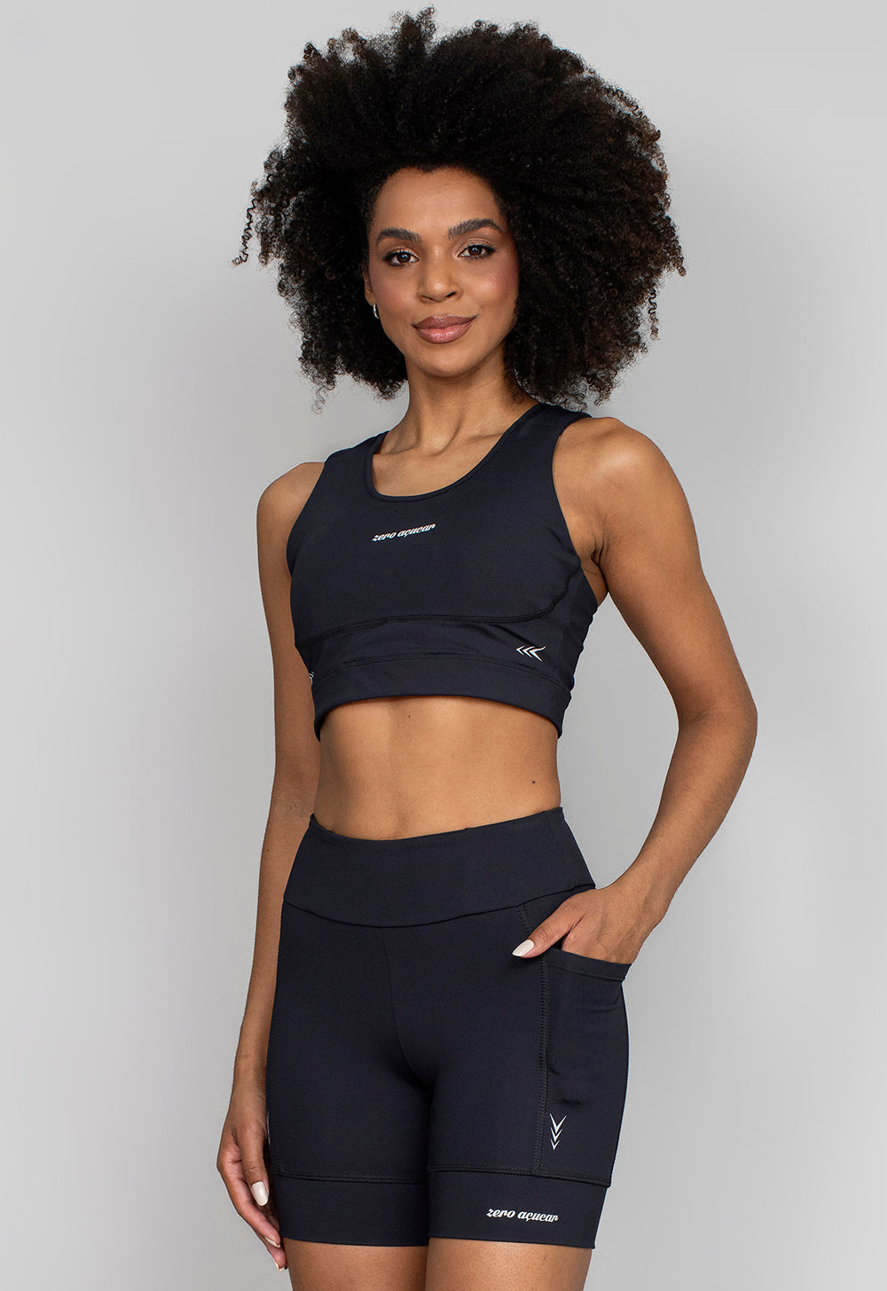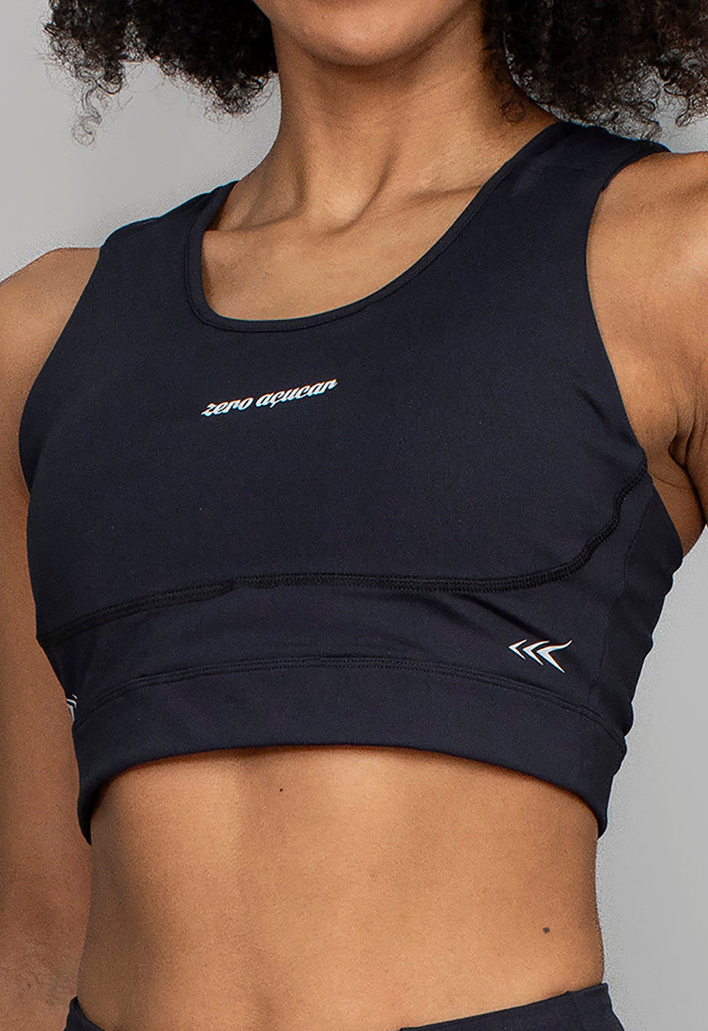 Modelagem anatômica com recortes funcionais para sustentação superior. Alças e estrutura planejadas para minimizar impacto, garantir suporte contínuo e valorizar o caimento. Visual esportivo da linha RUN ZA com acabamento técnico.