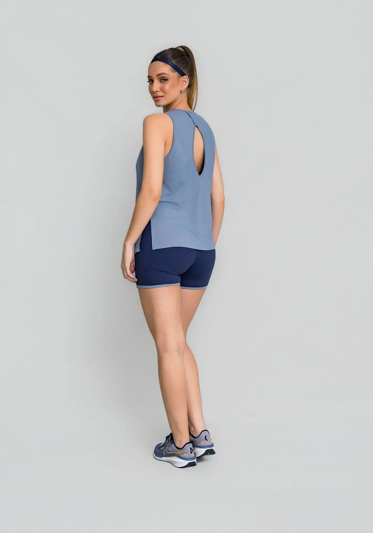 Combine com bermudas ou leggings de cintura alta para um visual harmonioso e funcional. Adicione um top com alças aparentes para realçar o recorte cavado e completar o look com atitude.