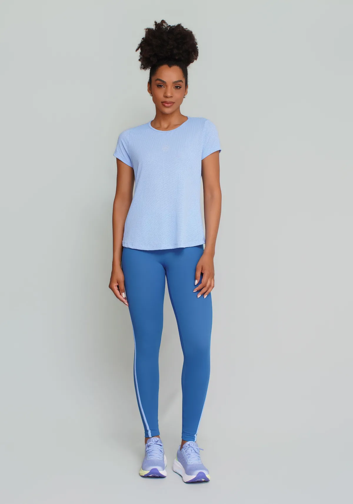 Combine com leggings ou bermudas de cintura alta para equilíbrio perfeito. Para treinos outdoor, finalize com jaqueta leve e tênis esportivo.