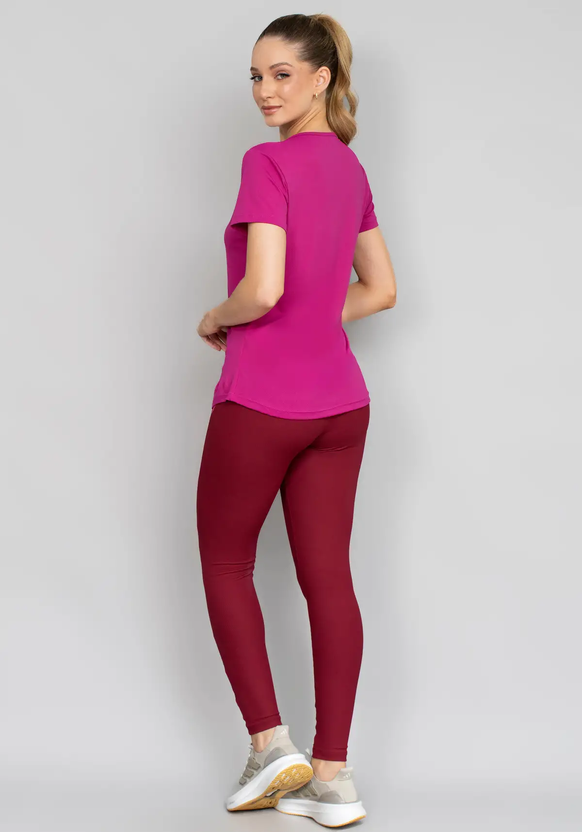 Use com leggings de cintura alta, shorts esportivos ou calças jogger. Para um look de transição (treino-rua), finalize com jaqueta leve e tênis lifestyle.
