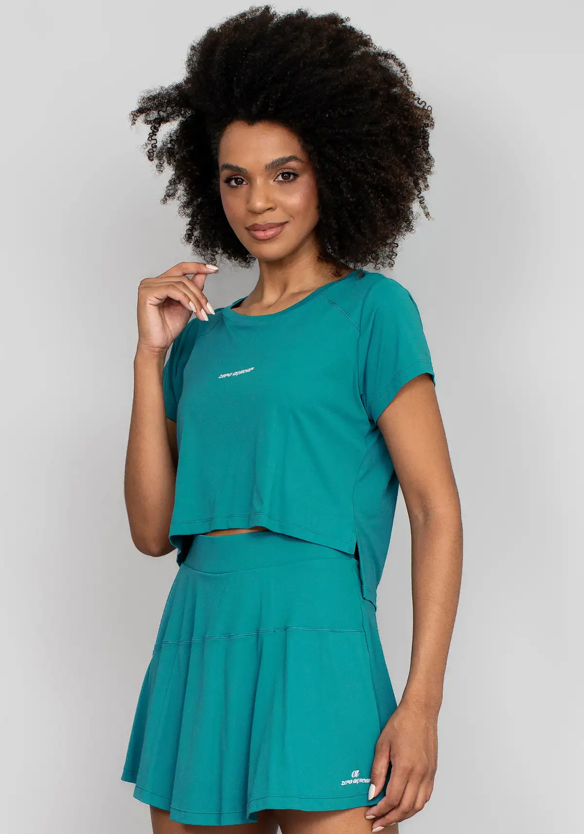 Modelagem cropped moderna, com caimento limpo e esportivo que destaca a silhueta sem marcar, trazendo um visual atual para treino dentro ou fora da praia.