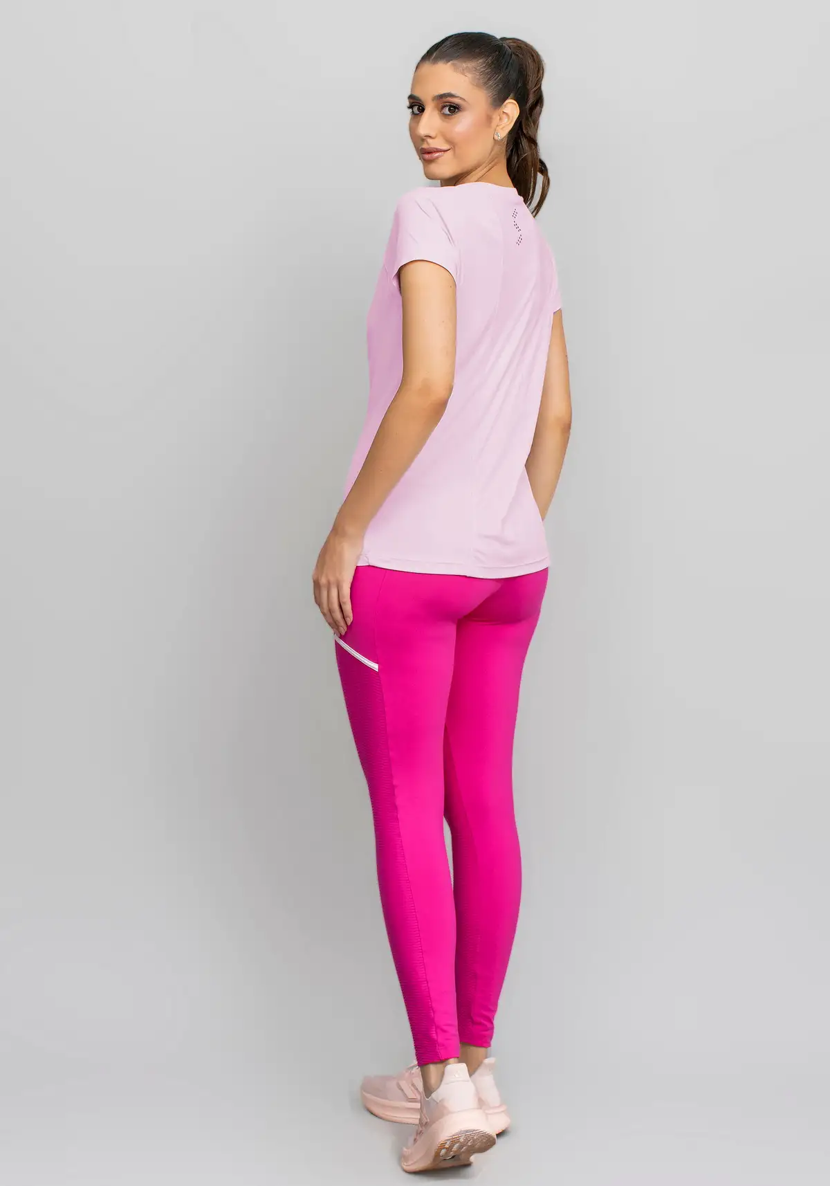 Projetada para treinos de média e alta intensidade, permite amplitude de movimento com caimento estável. A tecnologia auxilia na troca térmica e evita sensação de abafamento.
