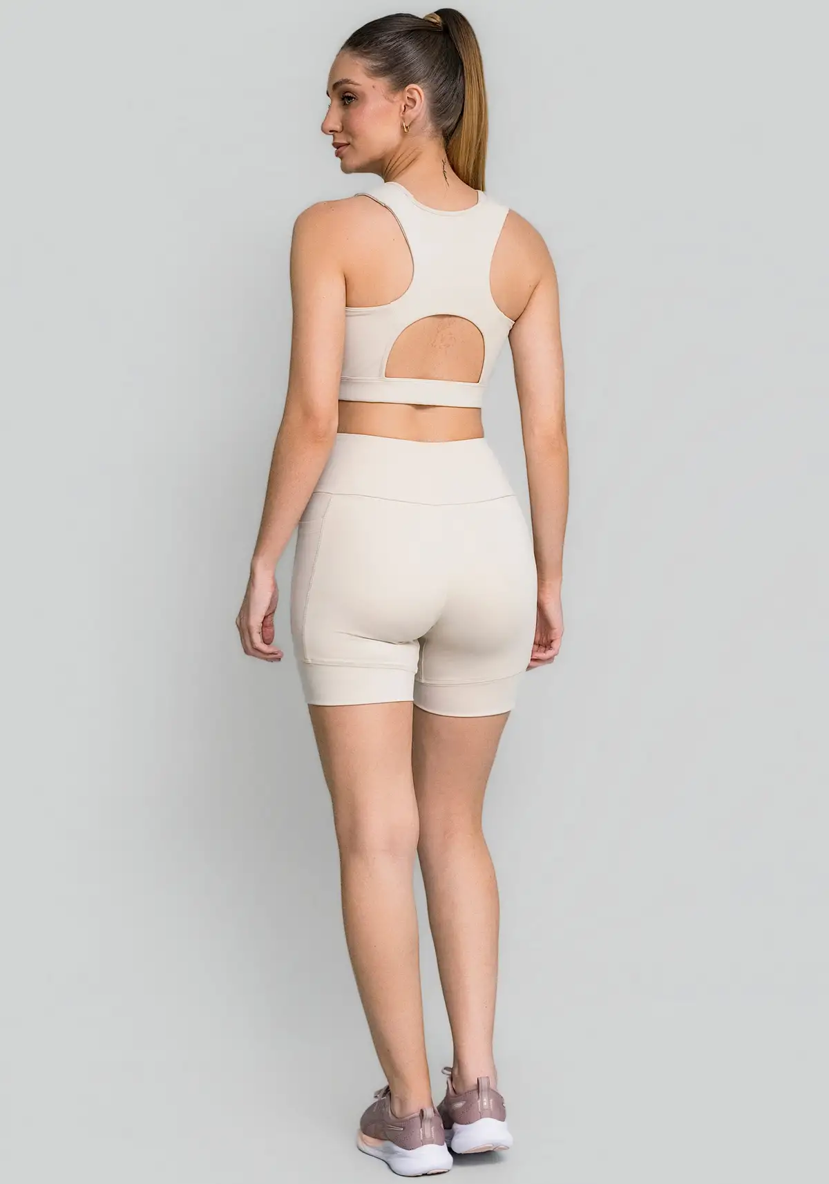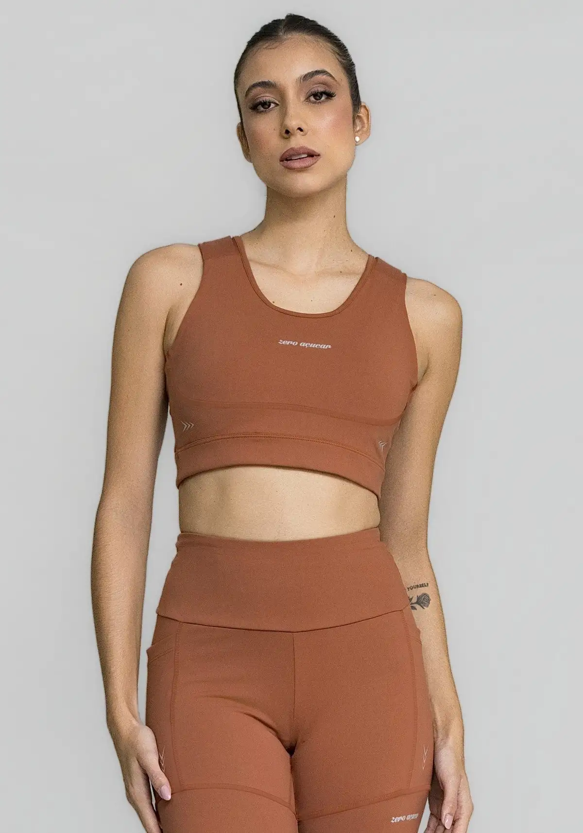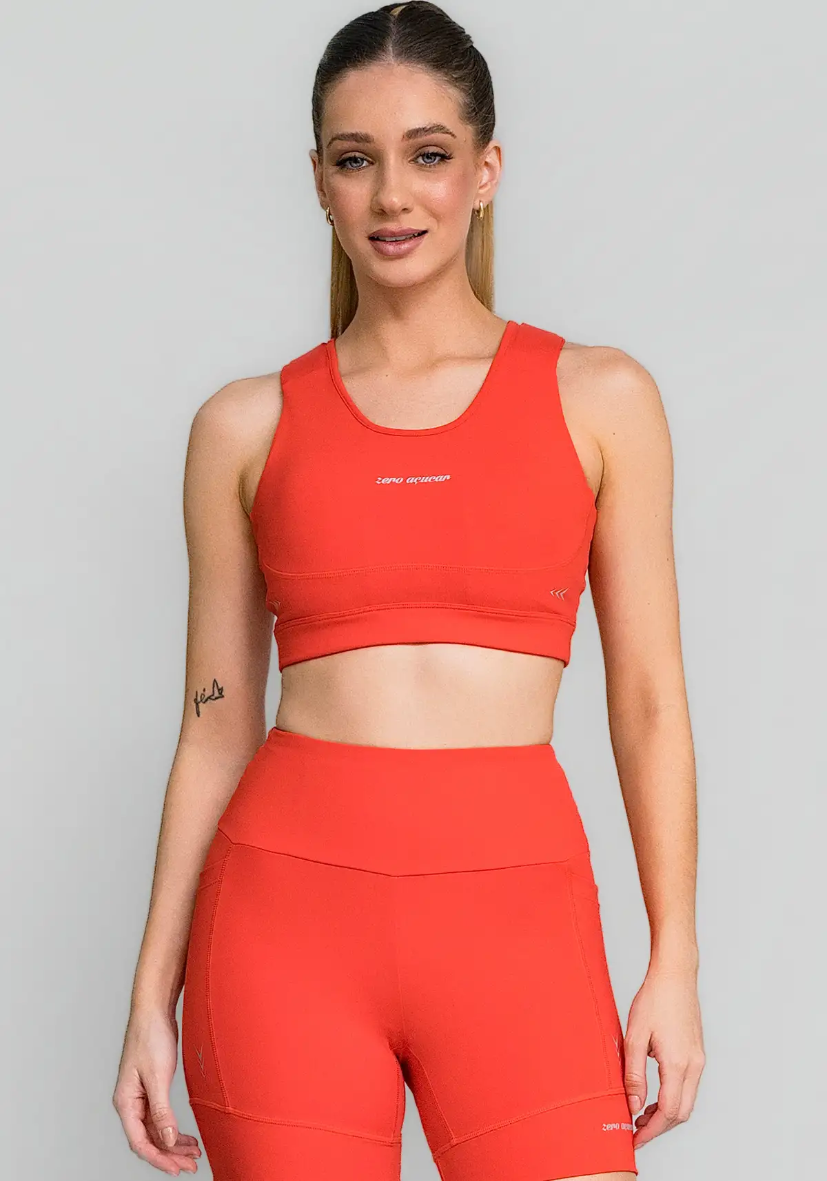 Com recortes anatômicos e bojo estruturado, o top valoriza a silhueta e oferece firmeza onde o corpo mais precisa. A combinação de tecido compressivo, espuma protetora e proteção solar garante desempenho, conforto e estilo em um único produto.