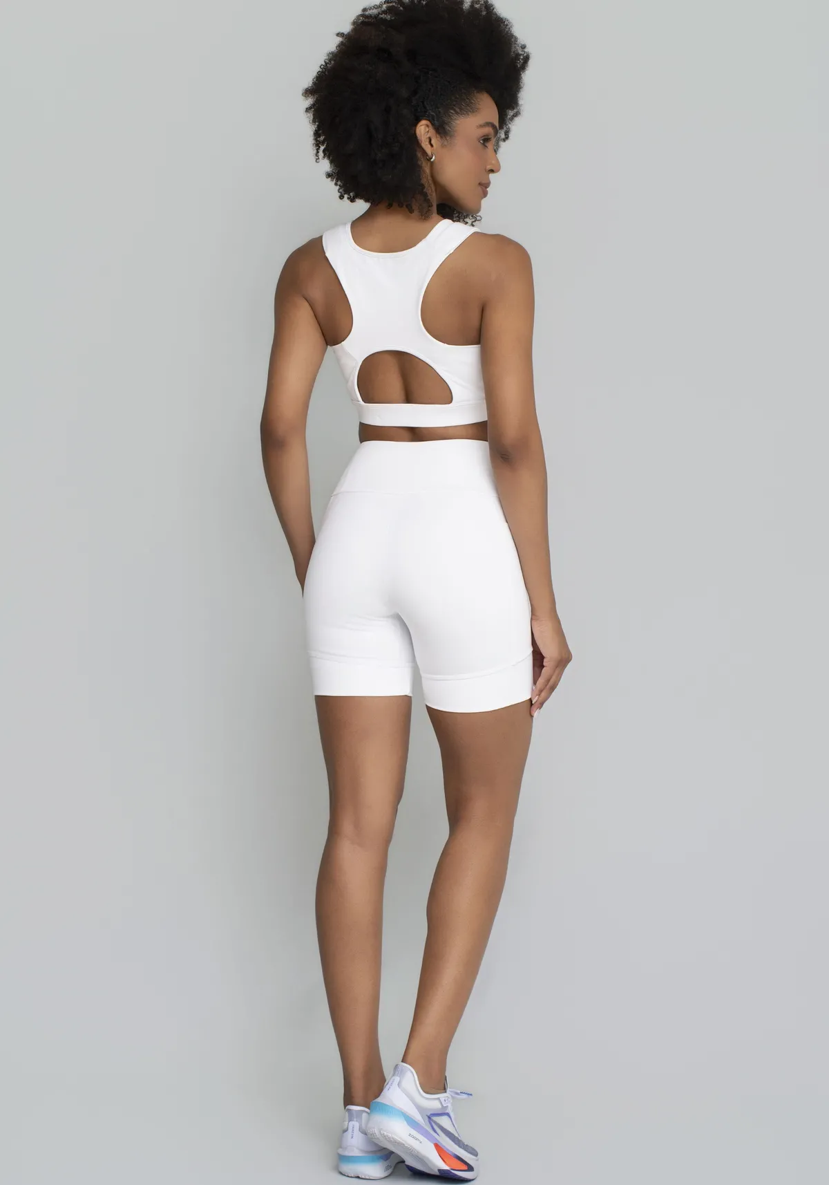 Com recortes anatômicos e bojo estruturado, o top valoriza a silhueta e oferece firmeza onde o corpo mais precisa. A combinação de tecido compressivo, espuma protetora e proteção solar garante desempenho, conforto e estilo em um único produto.