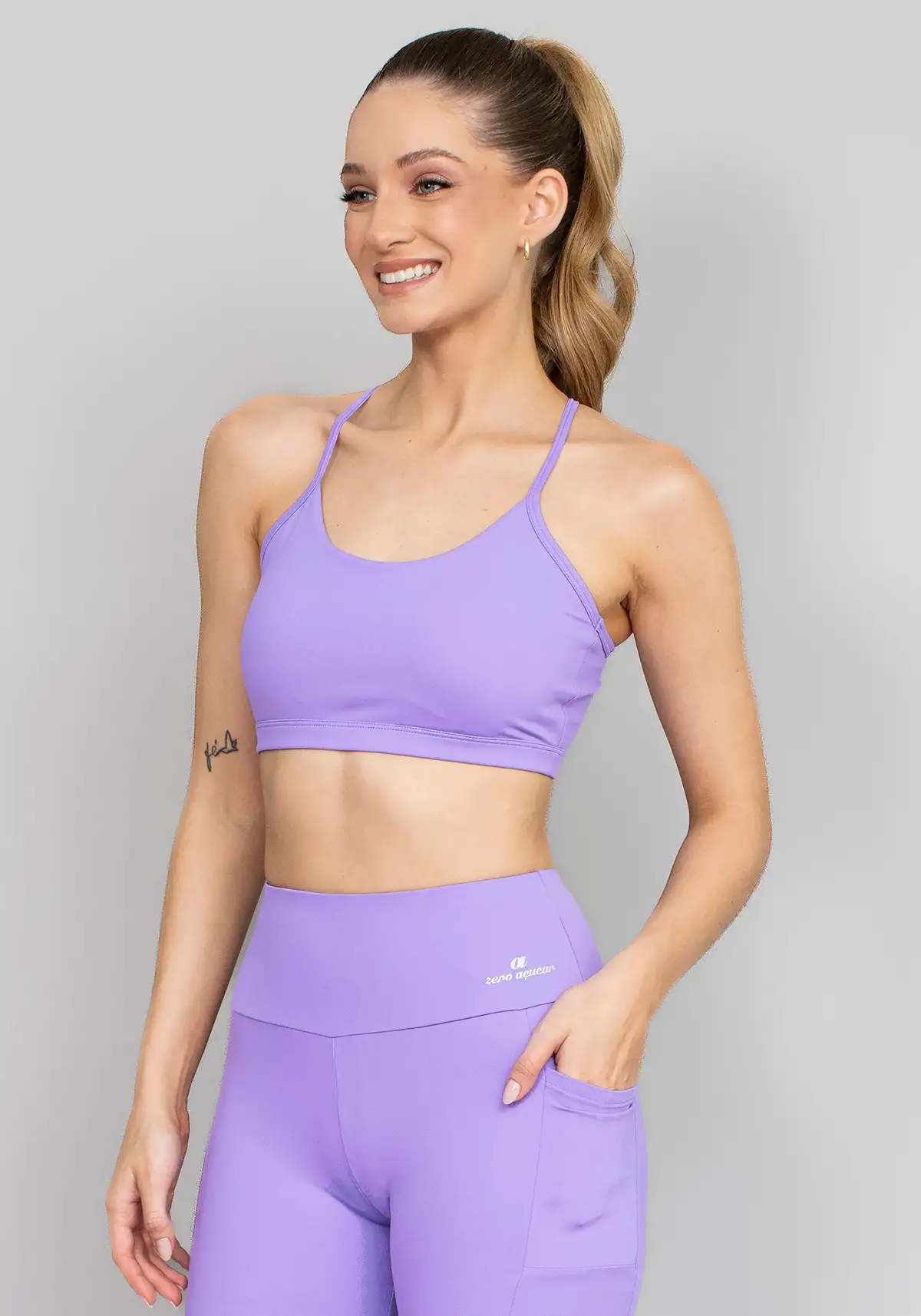 Modelagem clean e anatômica com acabamento delicado, oferecendo visual minimalista e moderno. Sustentação leve com encaixe confortável para rotina ativa e estética esportiva.