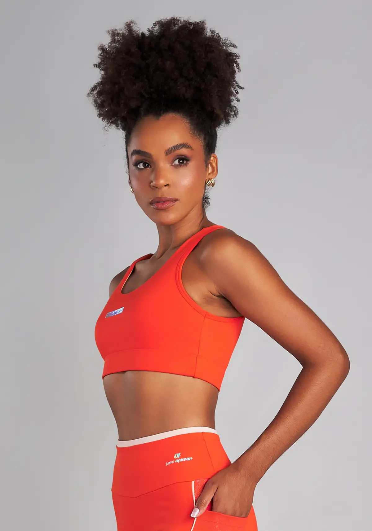 Indicado para quem busca um top com sustentação média, tecido tecnológico e design diferenciado, ideal para treinos intensos e looks fitness com presença.
