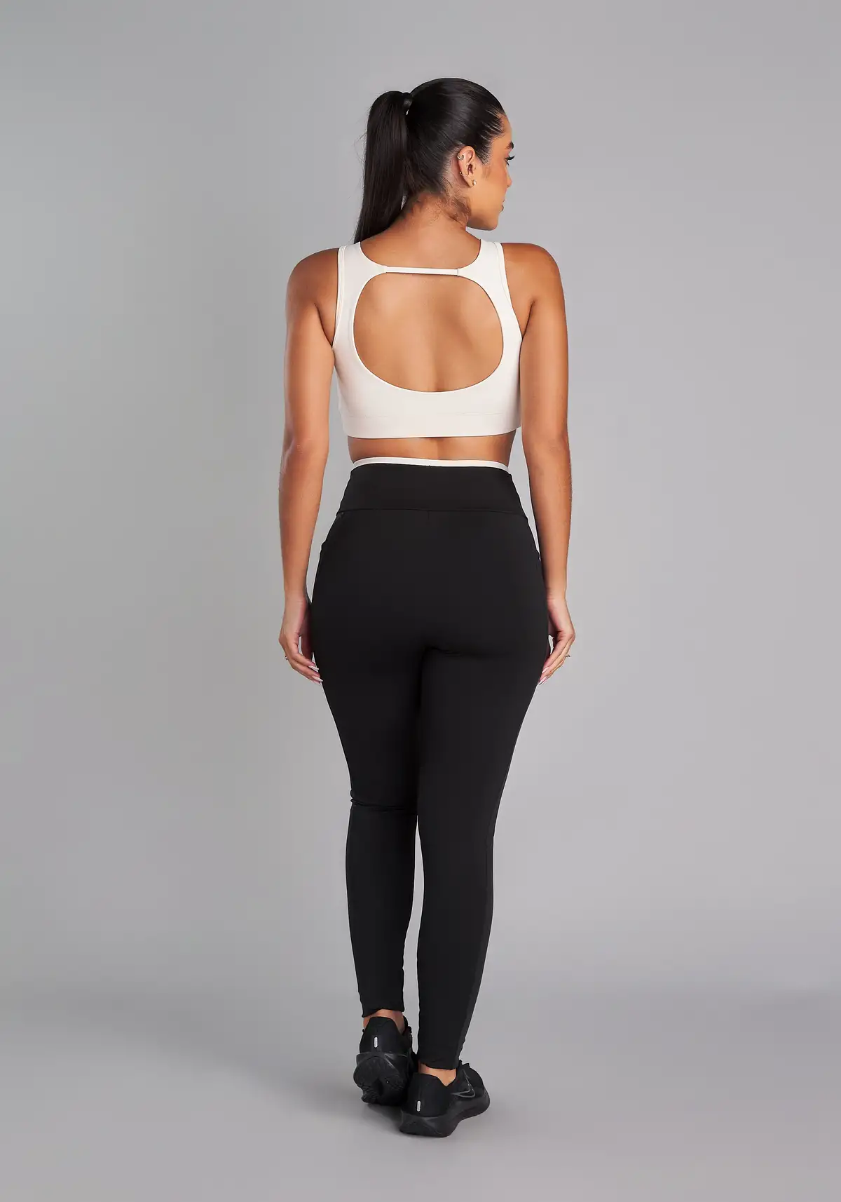Combine com leggings ou bermudas de cintura alta para equilibrar o visual. Pode ser usado também com jaquetas esportivas ou t-shirts amplas para um look casual pós-treino.