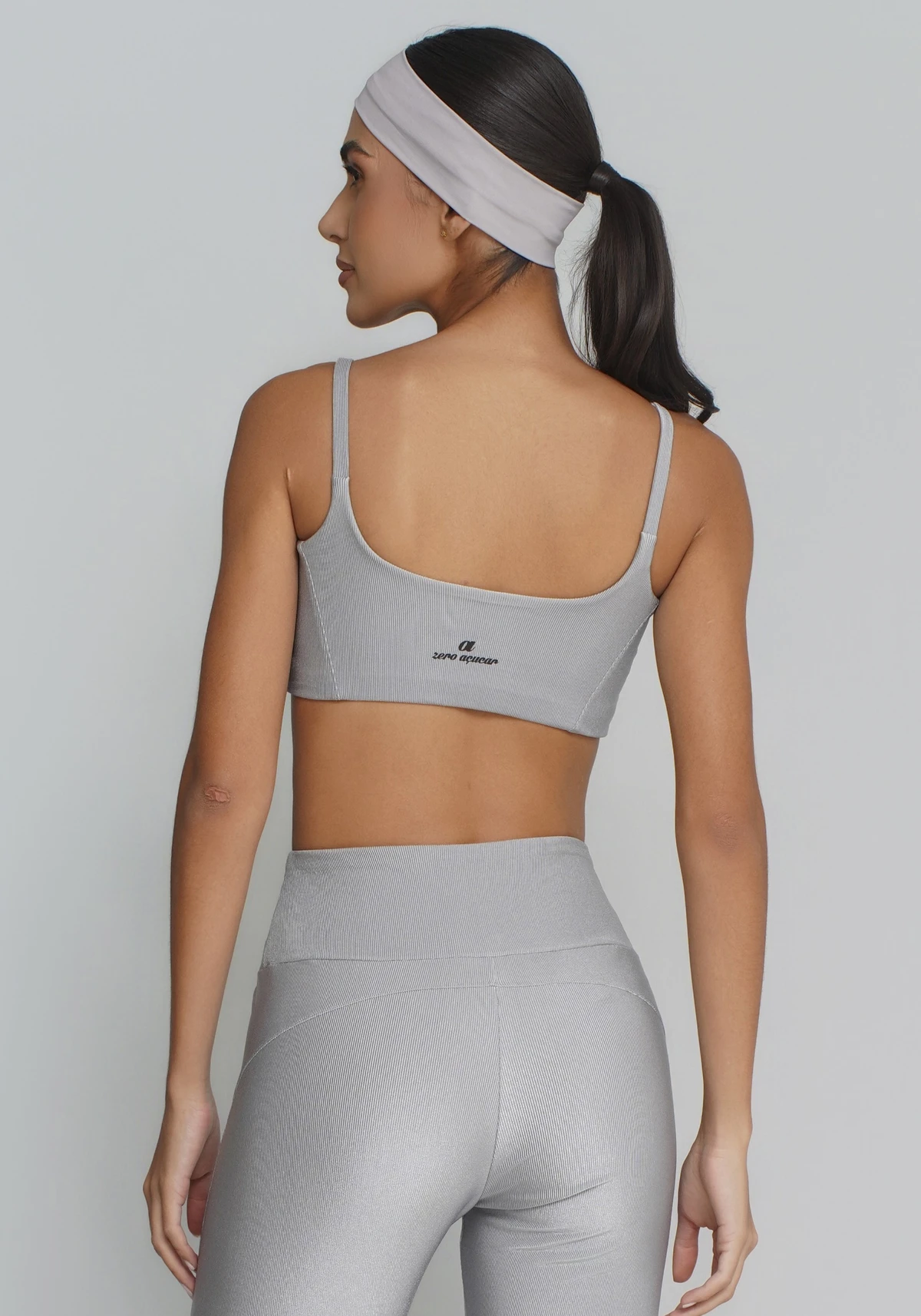 O Top Rib Glow possui base reforçada, alças finas e modelagem anatômica que se ajusta ao corpo sem apertar.