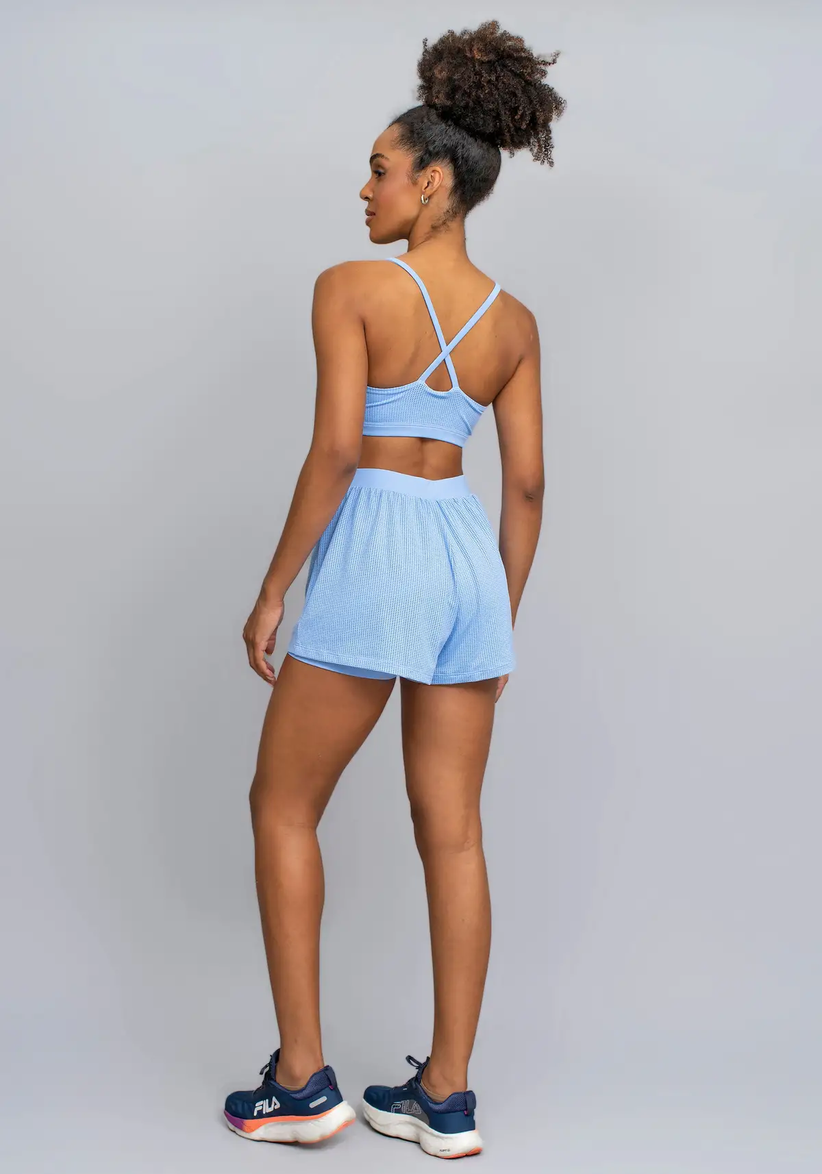 Use com leggings ou bermudas de treino de qualquer gramatura, regatas perfuradas ou t-shirts leves. Funciona tanto sozinho quanto sob camadas para treinos externos ou casuais esportivos.