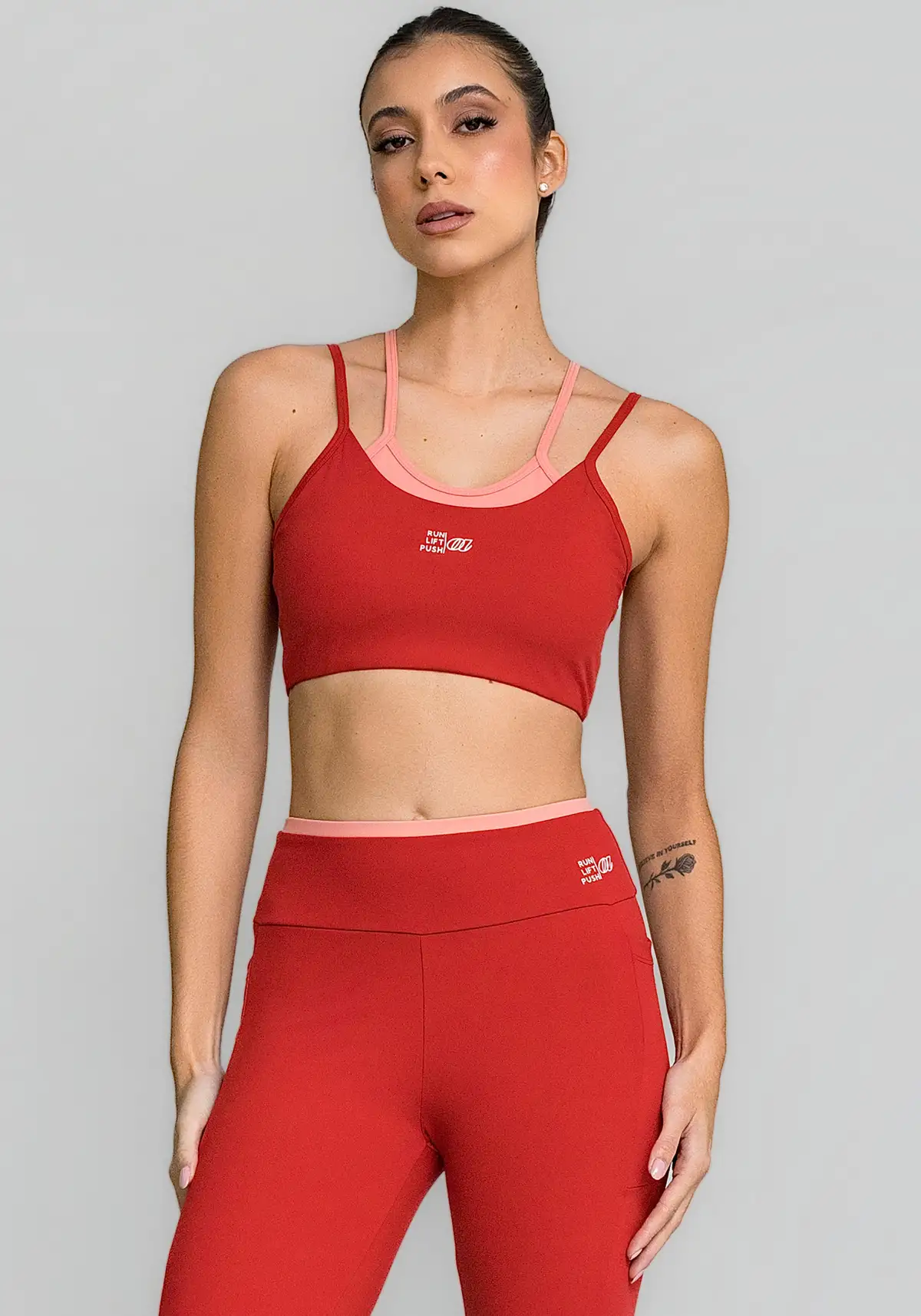 O Top Sobreposto Push é confeccionado em tecido Six desenvolvido com poliamida em máquina dupla, garantindo zero transparência durante as atividades físicas.